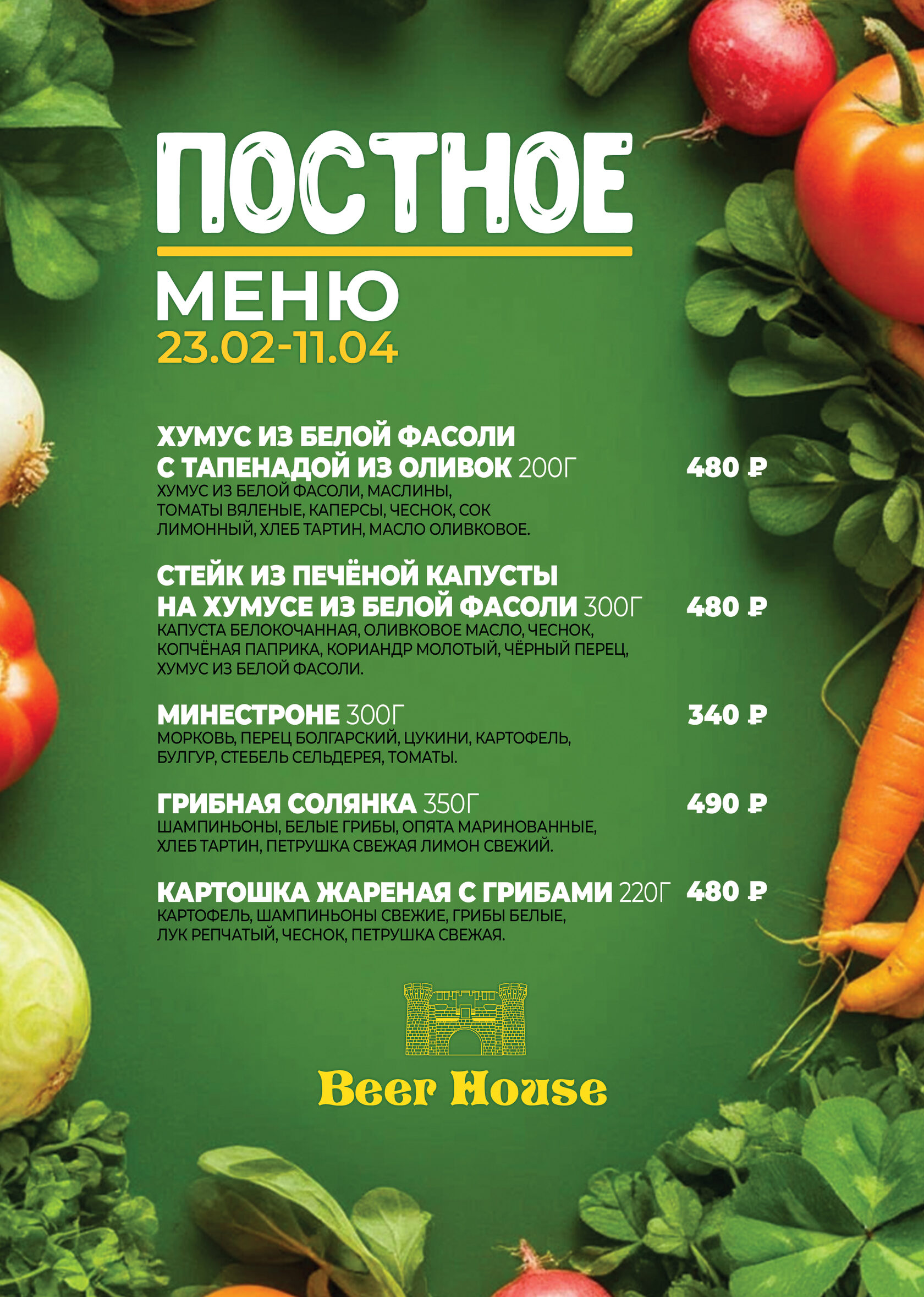 Постное меню в Beer House!